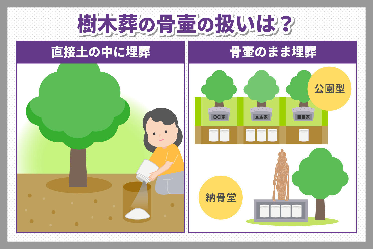 樹木葬では、骨壷が必要というわけではありません。遺骨の扱いは、選択する樹木葬の埋葬方法によって異なります。